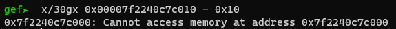 밑줄 친 영역에 반환받은 주소가 있는걸 확인할 수 있습니다. 이 이유는 위에 설명한대로 Top chunk보다 큰 사이즈를 요청 받아서 mmap syscall로 메모리를 할당 받았기 때문입니다. 해당 영역은 단일 청크로 사용되며, free시 munmap으로 해제되기 때문에 free이후에는 디버깅이 불가능합니다.