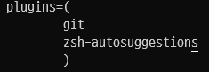 - ~/.zshrc 파일에 plugin 리스트에 zsh-autosuggestions를 추가