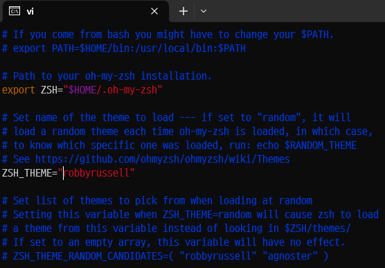 해당 테마는 별도의 설치없이 zshrc 문서에서 테마만 수정해주면 됩니다.