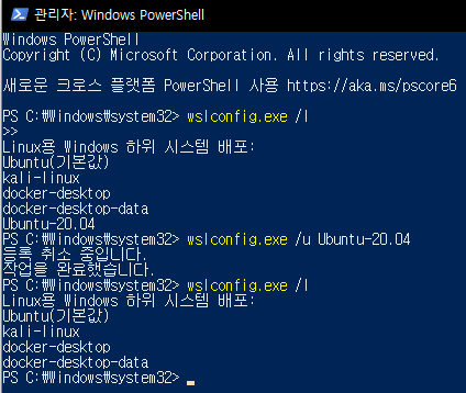 wsl2 설치된 리눅스 배포판 삭제하는 방법